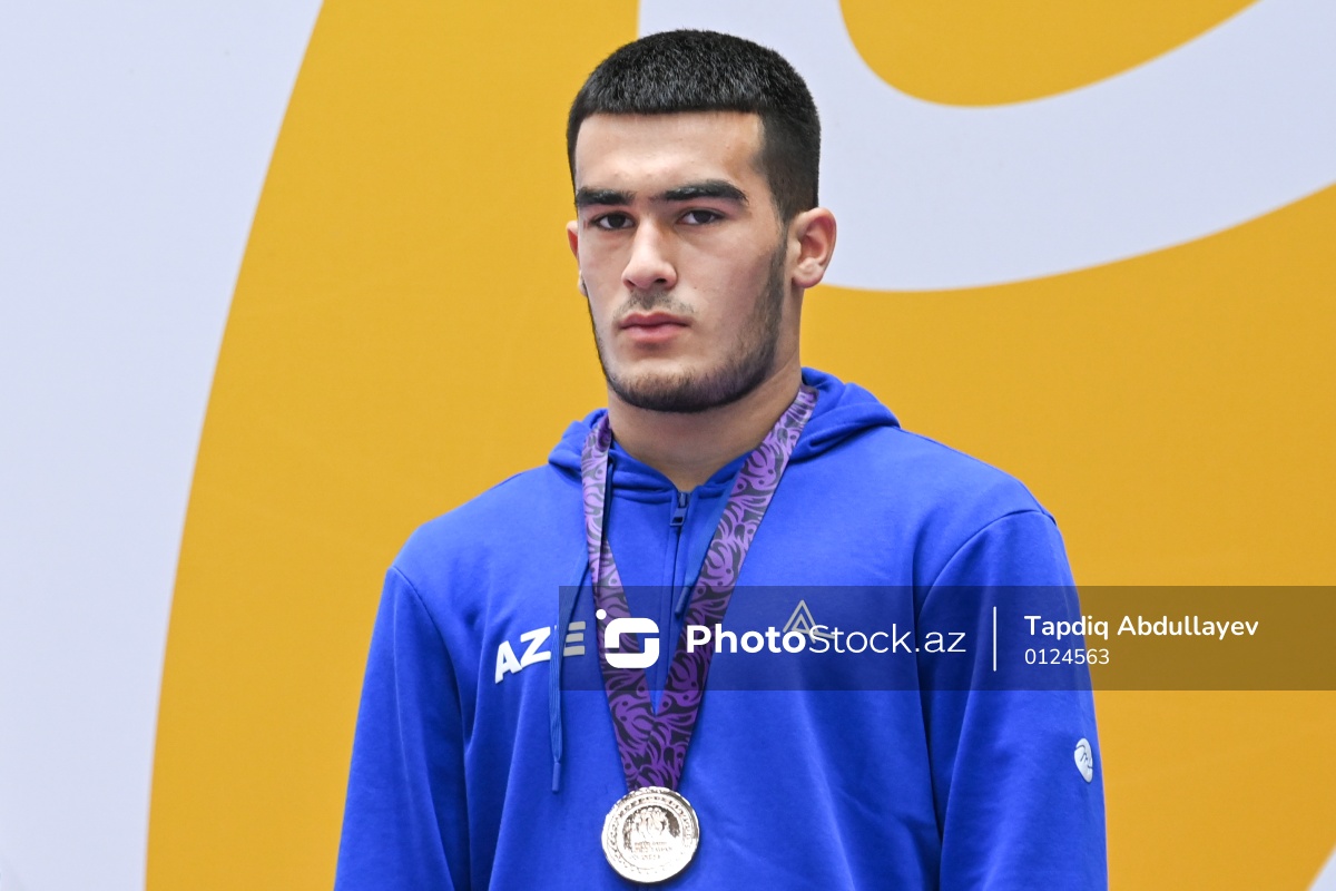 III MDB Oyunları çərçivəsində sambo üzrə yarışlarda 88 kq çəki dərəcəsində bürünc medal qazanan Azərbaycan idmançısı Xəzər Əmrahlı.