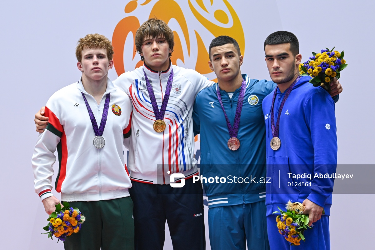 III MDB Oyunları çərçivəsində sambo üzrə 88 kq çəki dərəcəsində yarışan (soldan-sağa) gümüş medal mükafatçısı belaruslu samboçu Pavel Mishchanka, qızıl medal qazanan Rusiya samboçusu Sergei Maletin, bürünc medal mükafatçıları özbəkistanlı samboçu Shohjahon Golibov və Azərbaycan samboçusu Xəzər Əmrahlı.