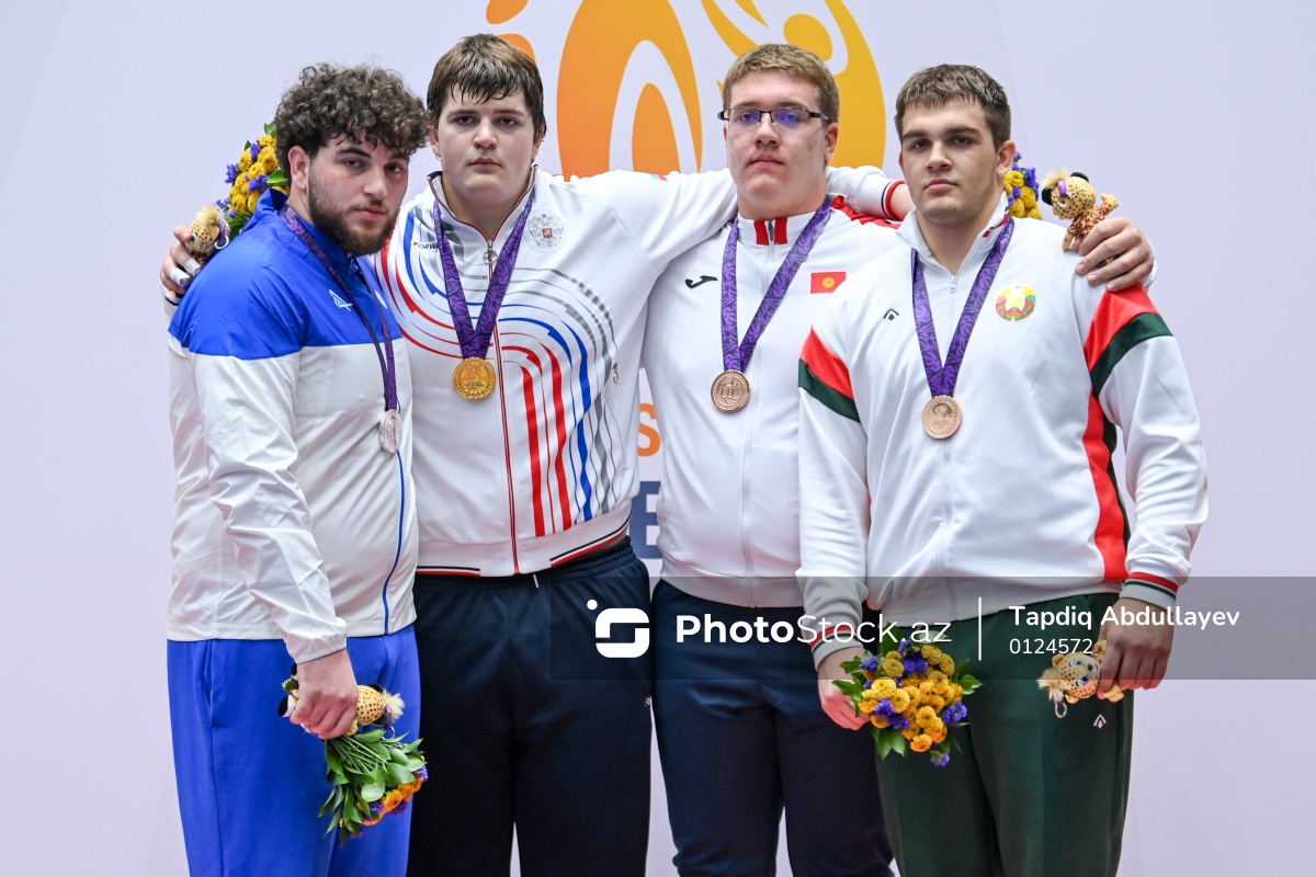III MDB Oyunları çərçivəsində sambo üzrə +98 kq çəki dərəcəsində yarışan (soldan-sağa) gümüş medal mükafatçısı azərbaycanlı samboçu Rəsul Səmədli, qızıl medal qazanan Rusiya samboçusu Ivan Gerasim, bürünc medal mükafatçıları qırğızıstanlı samboçu Ilia Iurevich Sukhinin və Qırğızıstan samboçusu Artsiom Koutsiukh.