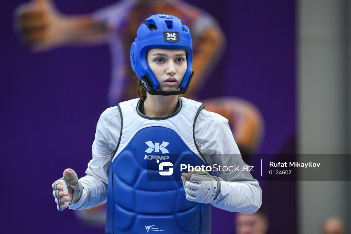 III MDB Oyunlarında 57 kq çəki dərəcəsində mübarizə aparan Azərbaycan taekvondoçusu Leyla Bəşirova.