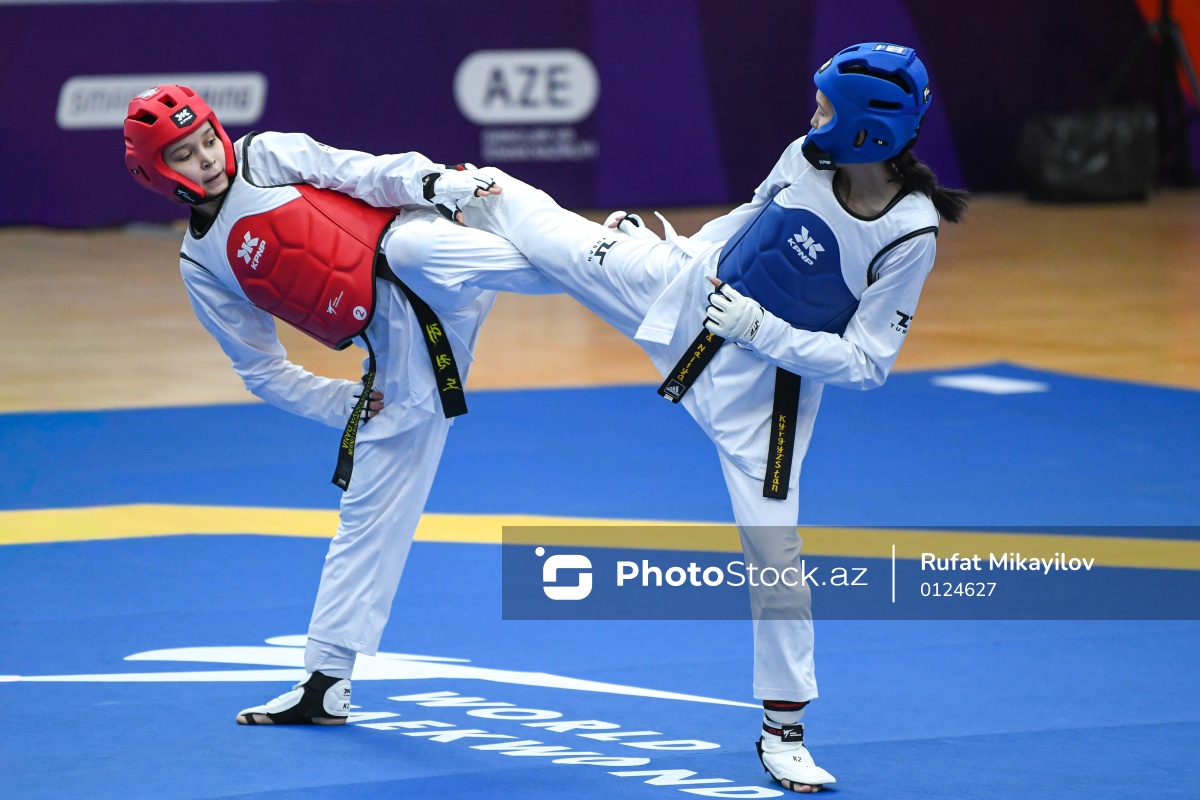 Sentyabrın 30-da III MDB Oyunları çərçivəsində Mingəçevirdəki “Kür” Olimpiya Tədris-İdman Mərkəzində taekvondo yarışları keçirilib. Qadınlar arasında 49 kq çəki dərəcəsində yarışan Rusiya taekvondoçusu Dana Koniukhova (sol) Qırğızıstan təmsilçisi Nailia Ulanbekovna Shailoobekovanı (sağ) 2:0 hesabı ilə məğlub edib.