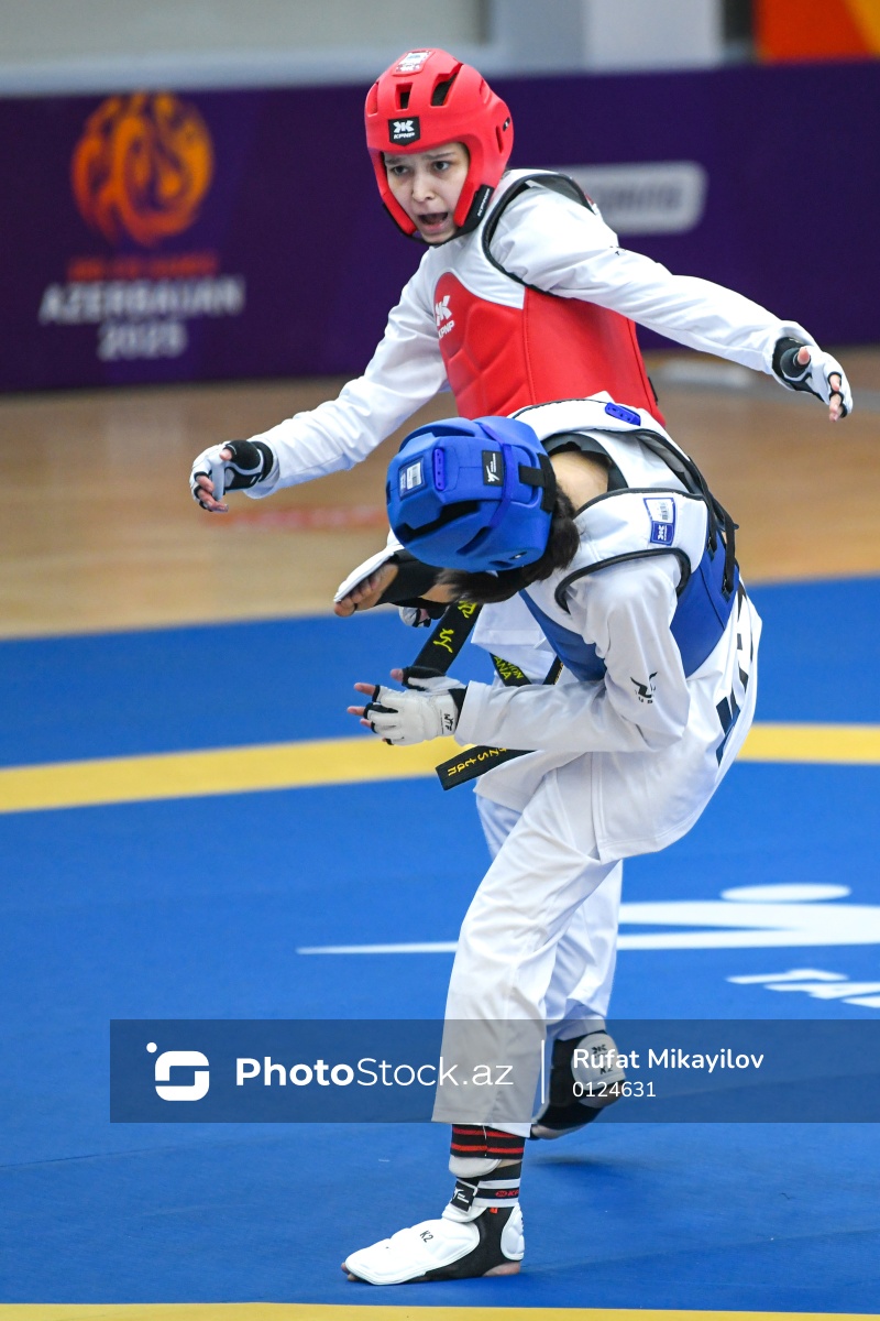 Sentyabrın 30-da III MDB Oyunları çərçivəsində Mingəçevirdəki “Kür” Olimpiya Tədris-İdman Mərkəzində taekvondo yarışları keçirilib. Qadınlar arasında 49 kq çəki dərəcəsində yarışan Rusiya taekvondoçusu Dana Koniukhova (sol) Qırğızıstan təmsilçisi Nailia Ulanbekovna Shailoobekovanı (sağ) 2:0 hesabı ilə məğlub edib.