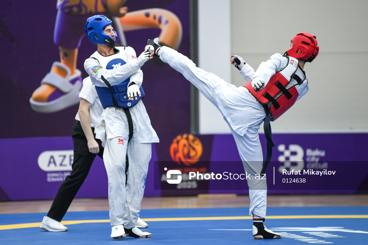 Sentyabrın 30-da III MDB Oyunları çərçivəsində Mingəçevirdəki “Kür” Olimpiya Tədris-İdman Mərkəzində taekvondo yarışları keçirilib. Kişilər arasında 68 kq çəki dərəcəsində yarışan azərbaycanlı taekvondoçu Vaqif Haciyev (sol) Qazaxıstan təmsilçisi Anuar Mukhametkarymova (sağ) 0:2 hesabı ilə məğlub olub.