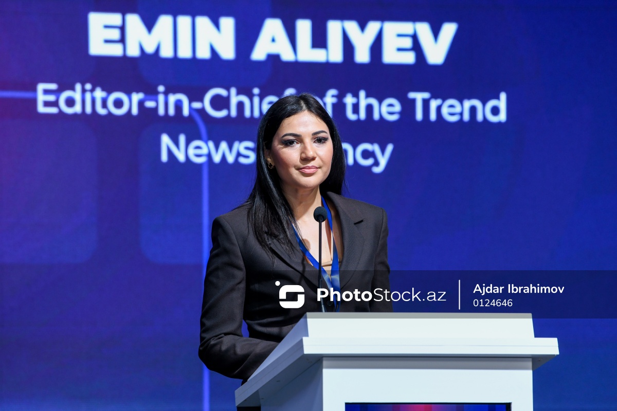 "Rəqəmsal transformasiya və media" mövzusunda II Azərbaycan-Özbəkistan Media Forumunun açılış mərasimində çıxış edən Medianın İnkişafı Agentliyinin Kommunikasiya və informasiya texnologiyaları departamentinin Kommunikasiya şöbəsinin müdiri Səidə Şəfiyeva.