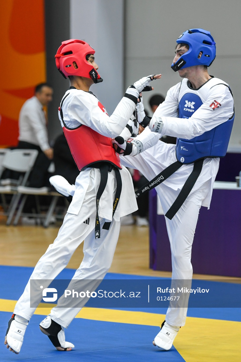 Sentyabrın 30-da III MDB Oyunları çərçivəsində Mingəçevirdəki “Kür” Olimpiya Tədris-İdman Mərkəzində taekvondo yarışları keçirilib. Kişilər arasında 58 kq çəki dərəcəsində yarışan qırğızıstanlı taekvondoçu Nurkhan Ryskeldievich Samidinov (sol) Rusiya təmsilçisi Igor Dzhioev (sağ) 2:1 hesabı ilə məğlub edib.