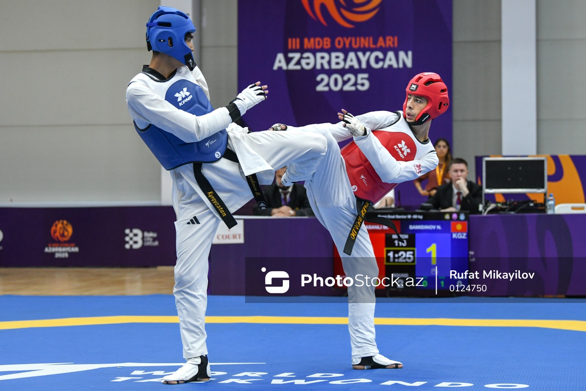 Sentyabrın 30-da III MDB Oyunları çərçivəsində Mingəçevirdəki “Kür” Olimpiya Tədris-İdman Mərkəzində taekvondo yarışları keçirilib. Kişilər arasında 58 kq çəki dərəcəsində yarışan Qırğızıstan taekvondoçusu Nurkhan Ryskeldievich Samidinov (sol) azərbaycanlı idmançı Məhəmməd Həsənlini (sağ) 2:0 hesabı ilə məğlub edib.