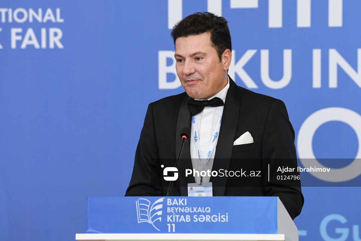 XI Bakı Beynəlxalq Kitab Sərgisində çıxış edən Azərbaycan Respublikasının Əməkdar artisti, aparıcı Elşən Cəbrayılov.