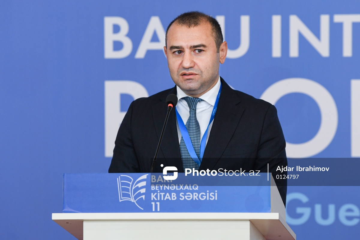 XI Bakı Beynəlxalq Kitab Sərgisində çıxış edən  Azərbaycan Respublikası mədəniyyət nazirinin müavini Fərid Cəfərov.
