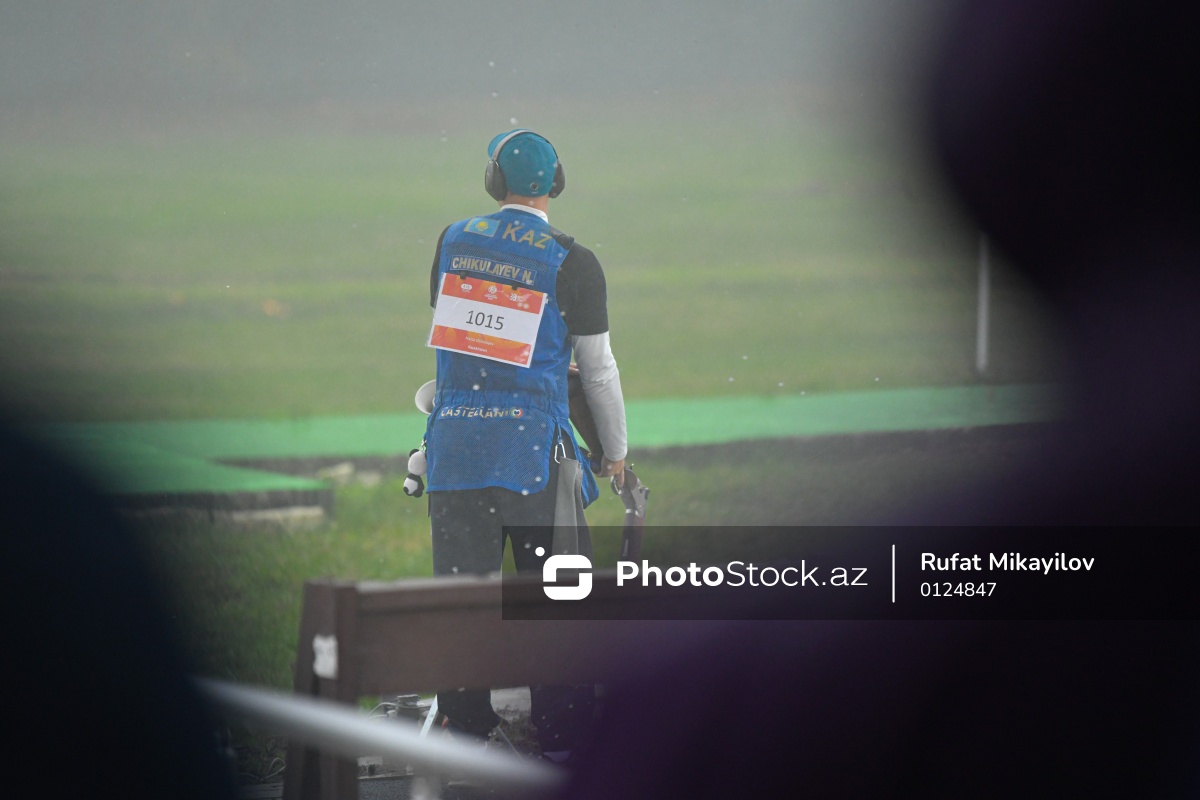 III MDB Oyunlarında stend atıcılığı üzrə yarışlarda iştirak edən Qazaxıstan atıcısı Nikita Chikulayev.