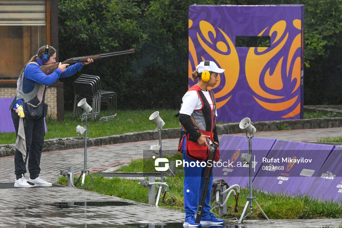 III MDB Oyunlarında stend atıcılığı üzrə yarışlarda iştirak edən Rusiya atıcısı Akhatova Alina (sol) və Azərbaycan atıcısı Nərmin Bədəlli (sağ).