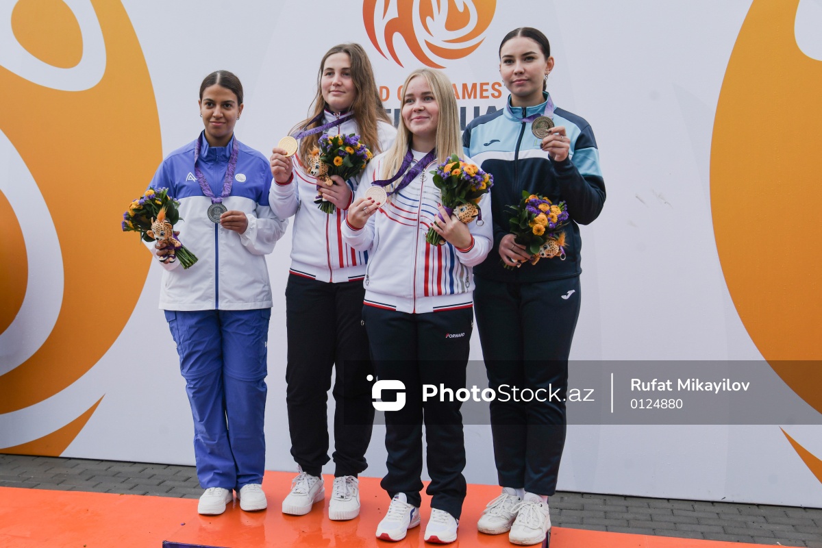 III MDB Oyunlarında stend atıcılığı üzrə yarışların mükafatlandırma mərasimində iştirak edən (soldan-sağa) gümüş medal qazanan Azərbaycan atıcısı Nərmin Bədəlli, qızıl medal alan Rusiya atıcısı Akhatova Alina, bürünc medal mükafatçıları Rusiya atıcısı Evelina Andreeva və Qazaxıstan idmançısı Nargiza Sarmanova.