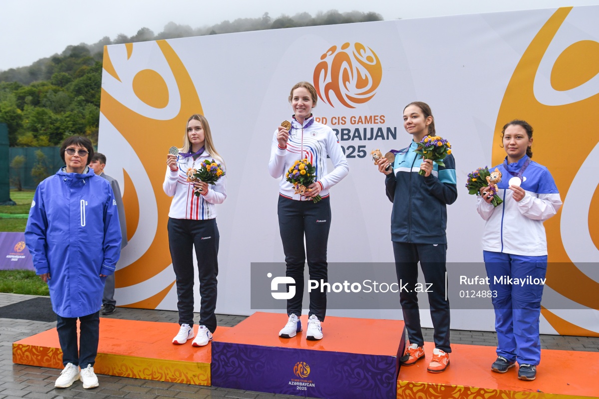 III MDB Oyunlarında stend atıcılığı üzrə yarışların mükafatlandırma mərasimində iştirak edən (soldan-sağa) Azərbaycan Atıcılıq Federasiyasının (ATF) vitse-prezidenti Zemfira Meftahətdinova, gümüş medal qazanan Rusiya atıcısı Daria Lekomtseva, qızıl medal alan Rusiya atıcısı Elizaveta Evgrafova, bürünc medal mükafatçıları Qazaxıstan atıcısı Lidiya Basharova və Azərbaycan idmançısı Daniyella Ulanova.