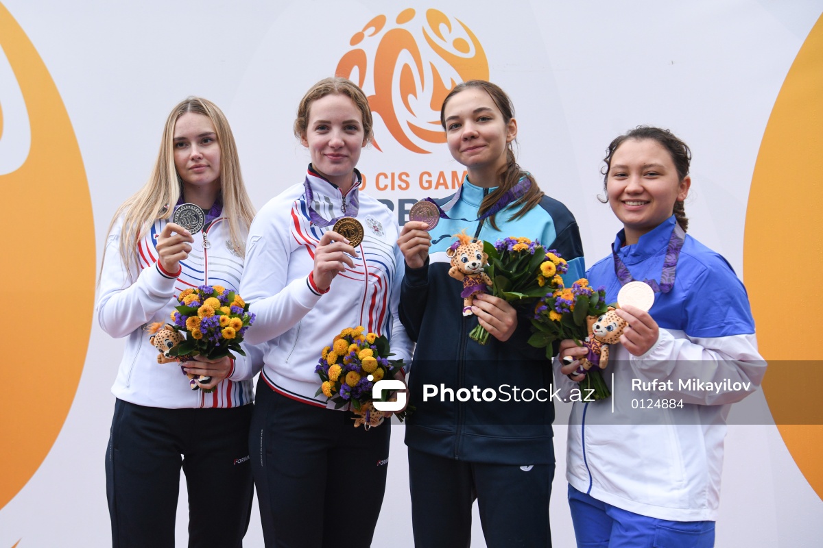 III MDB Oyunlarında stend atıcılığı üzrə yarışların mükafatlandırma mərasimində iştirak edən (soldan-sağa) gümüş medal qazanan Rusiya atıcısı Daria Lekomtseva, qızıl medal alan Rusiya atıcısı Elizaveta Evgrafova, bürünc medal mükafatçıları Qazaxıstan atıcısı Lidiya Basharova və Azərbaycan idmançısı Daniyella Ulanova.