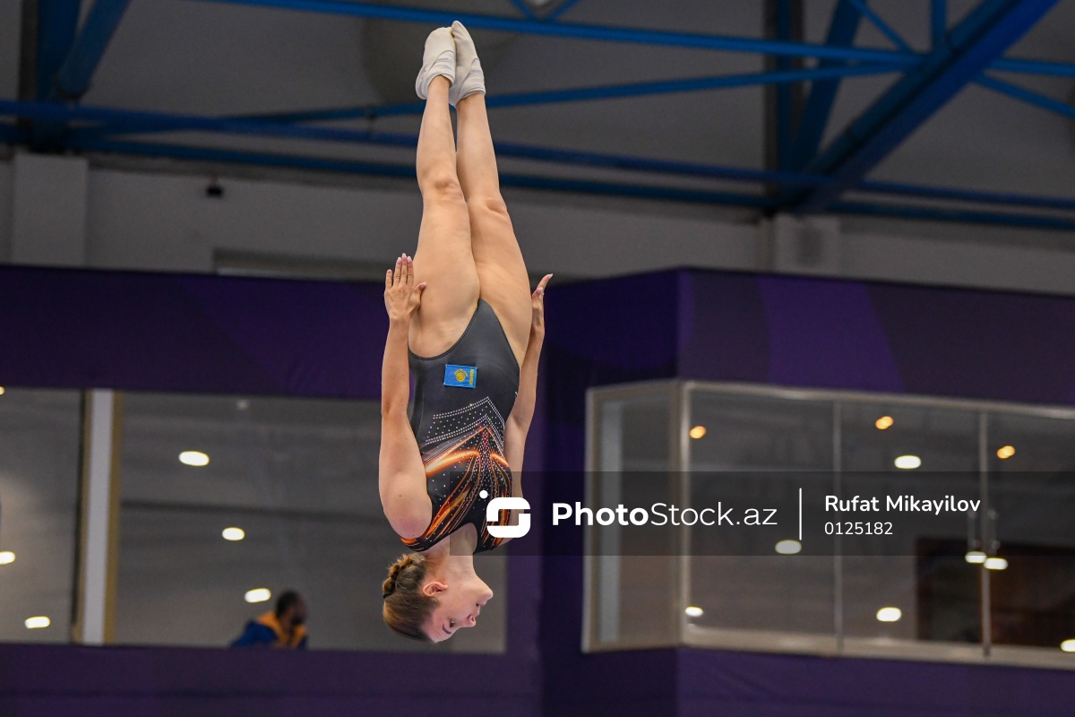 III MDB Oyunlarında batut gimnastikası üzrə yarışda iştirak edən Qazaxıstan idmançısı Angelina Glukhova.