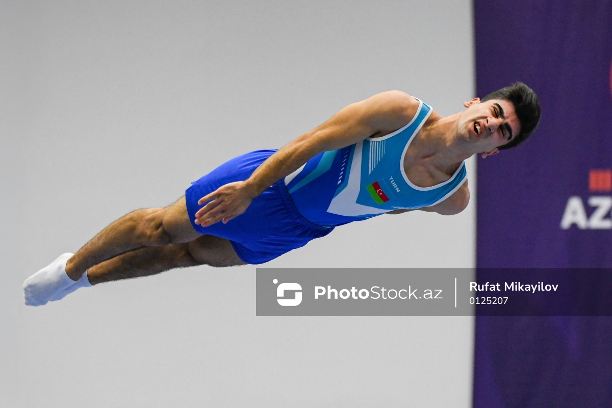 III MDB Oyunlarında batut gimnastikası üzrə yarışda iştirak edən Azərbaycan idmançısı Maqsud Mahsudov.