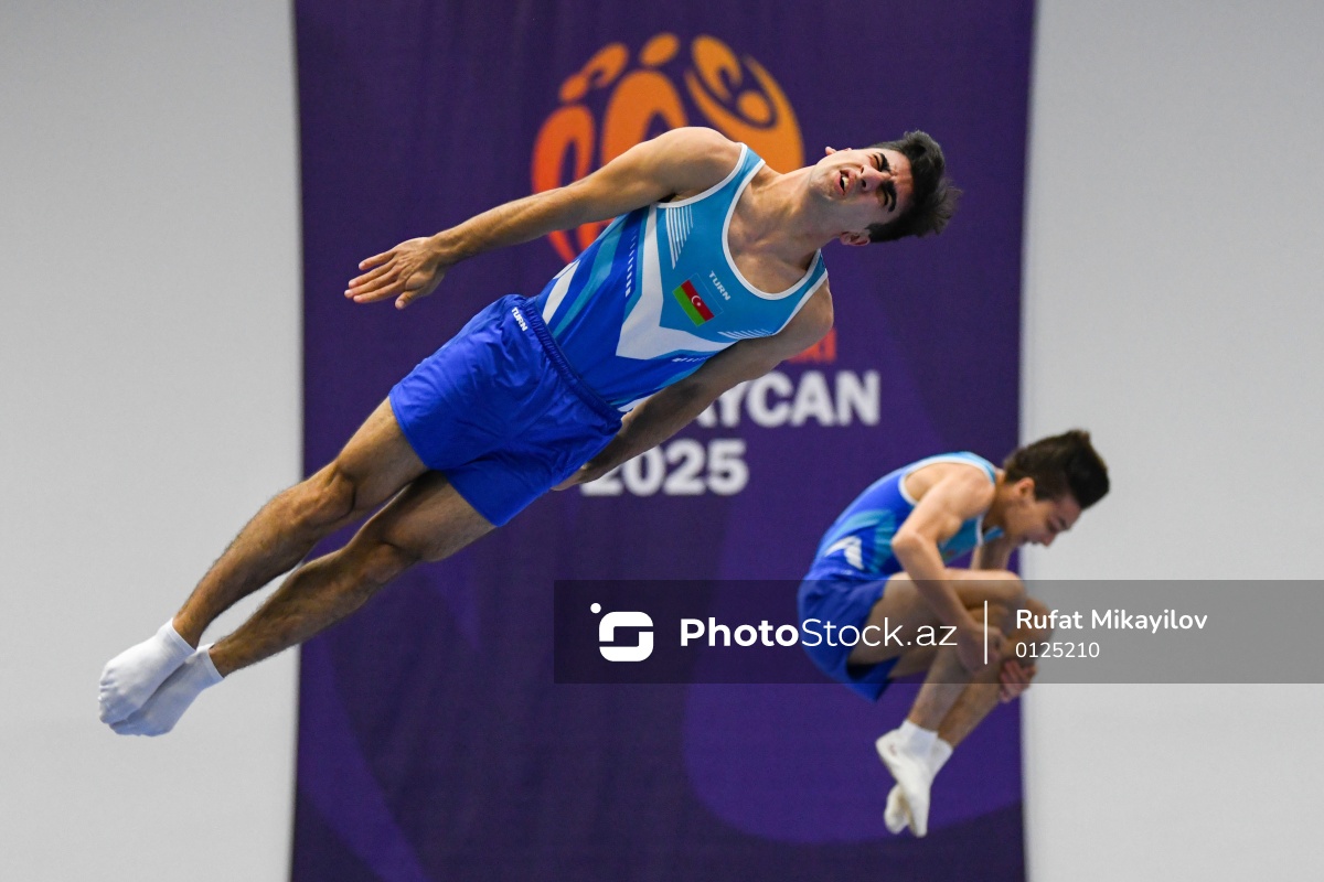 III MDB Oyunlarında batut gimnastikası üzrə yarışda iştirak edən Azərbaycan idmançısı Maqsud Mahsudov.