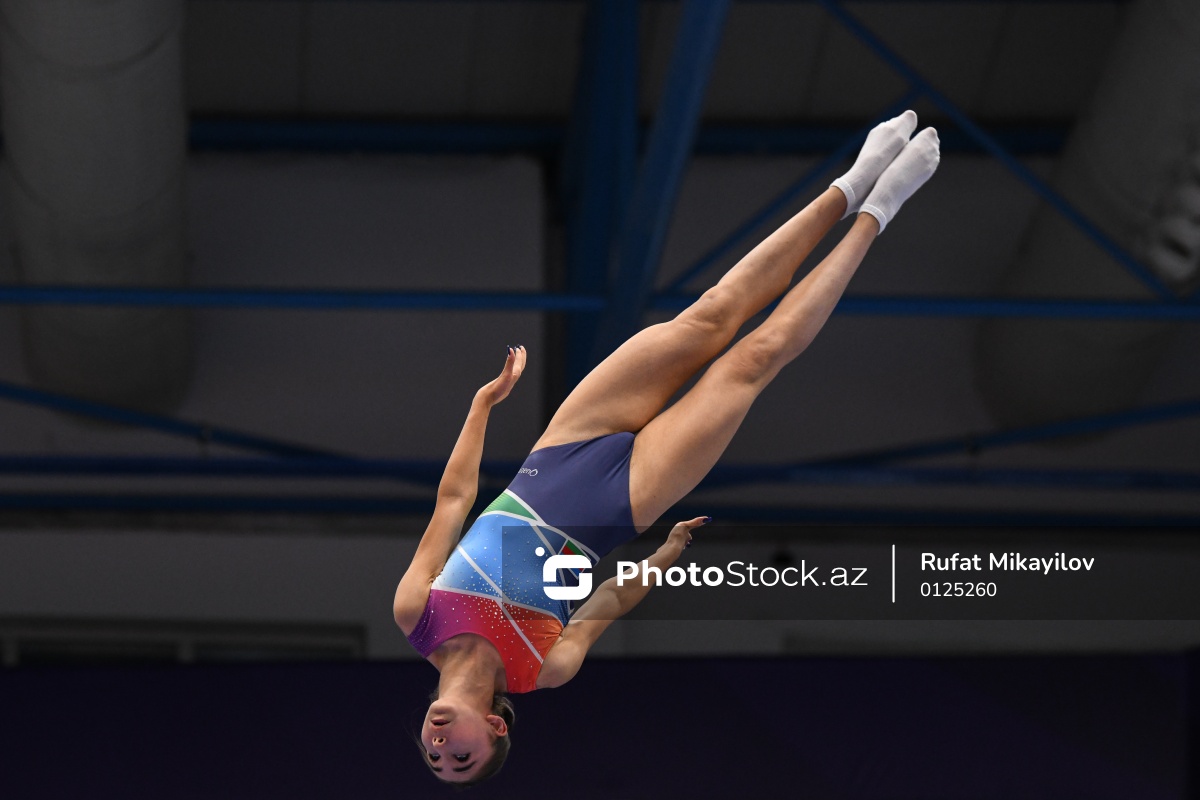 III MDB Oyunlarında batut gimnastikası üzrə yarışlarda iştirak edən Azərbaycan idmançısı Şəfiqə Hümbətova.