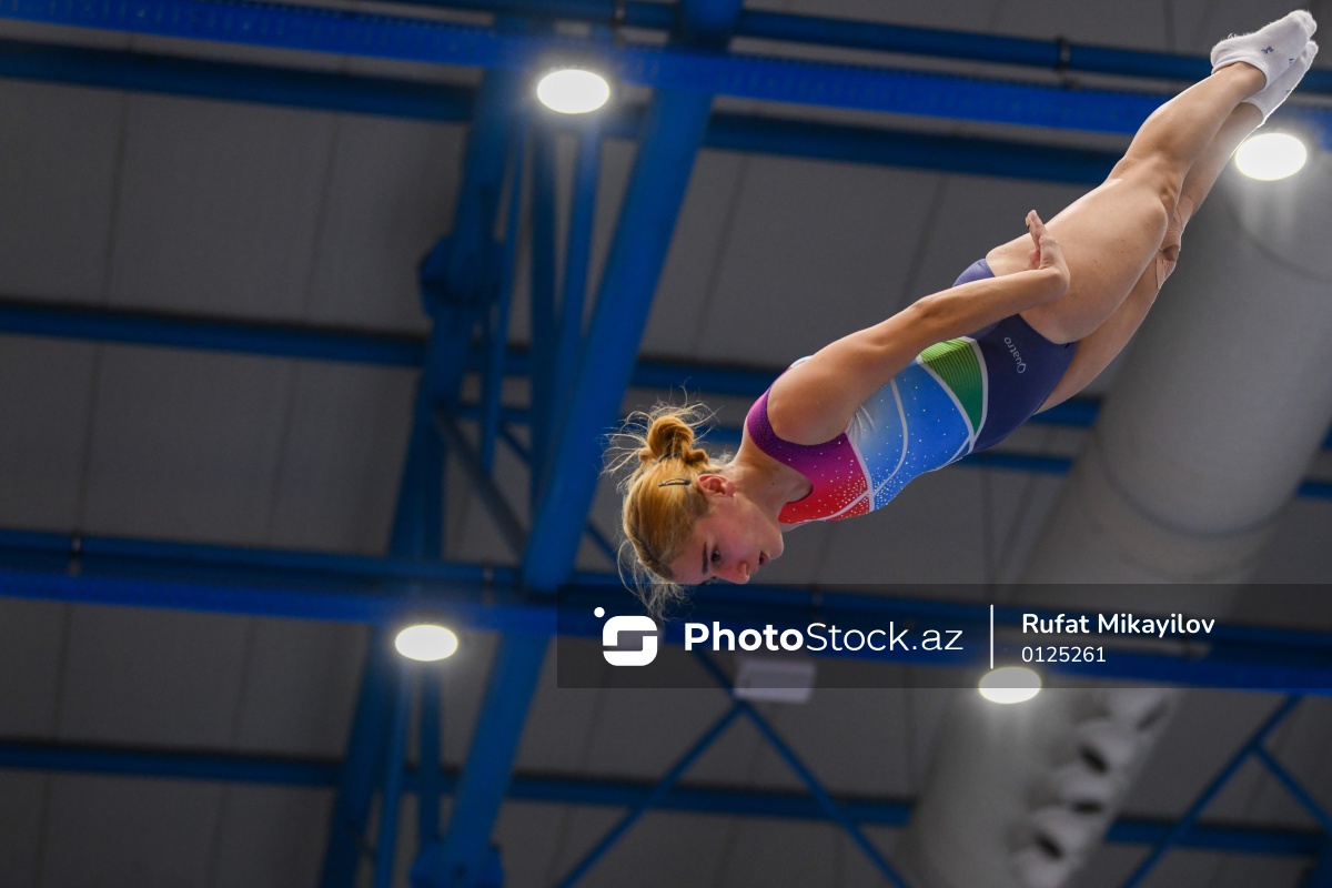 III MDB Oyunlarında batut gimnastikası üzrə yarışlarda iştirak edən Azərbaycan idmançısı Selcan Mahsudova.