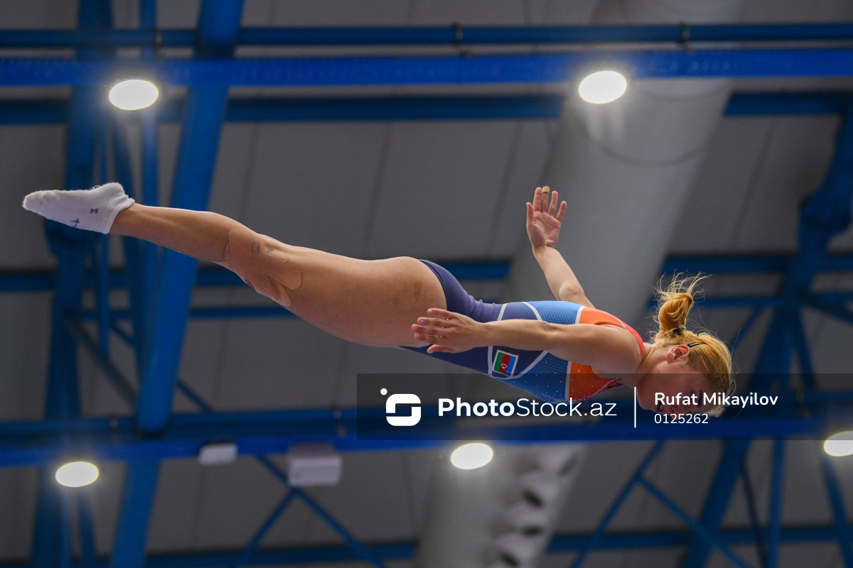 III MDB Oyunlarında batut gimnastikası üzrə yarışlarda iştirak edən Azərbaycan idmançısı Selcan Mahsudova.