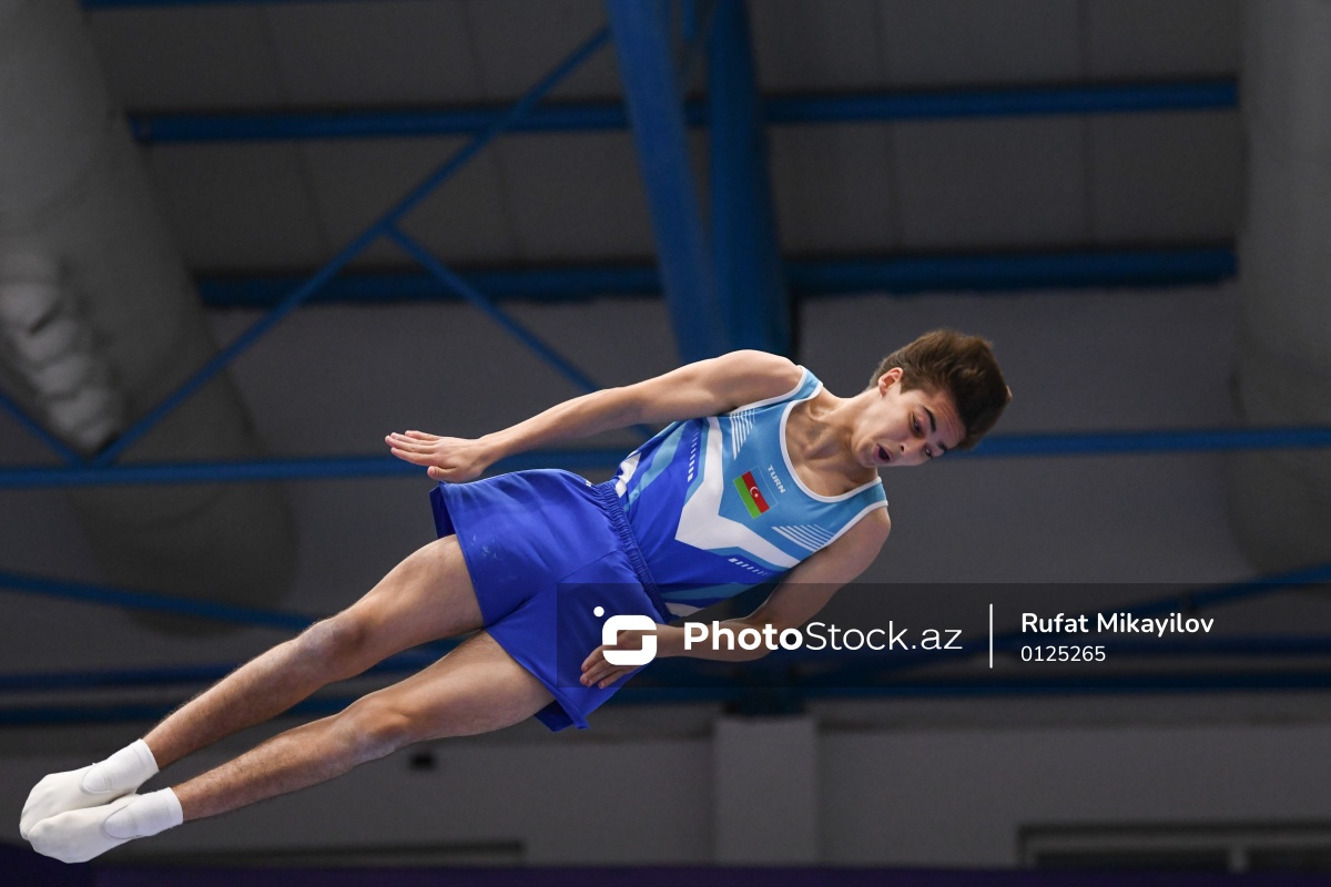 III MDB Oyunlarında batut gimnastikası üzrə yarışda iştirak edən Azərbaycan idmançısı Hüseyn Abbasov.