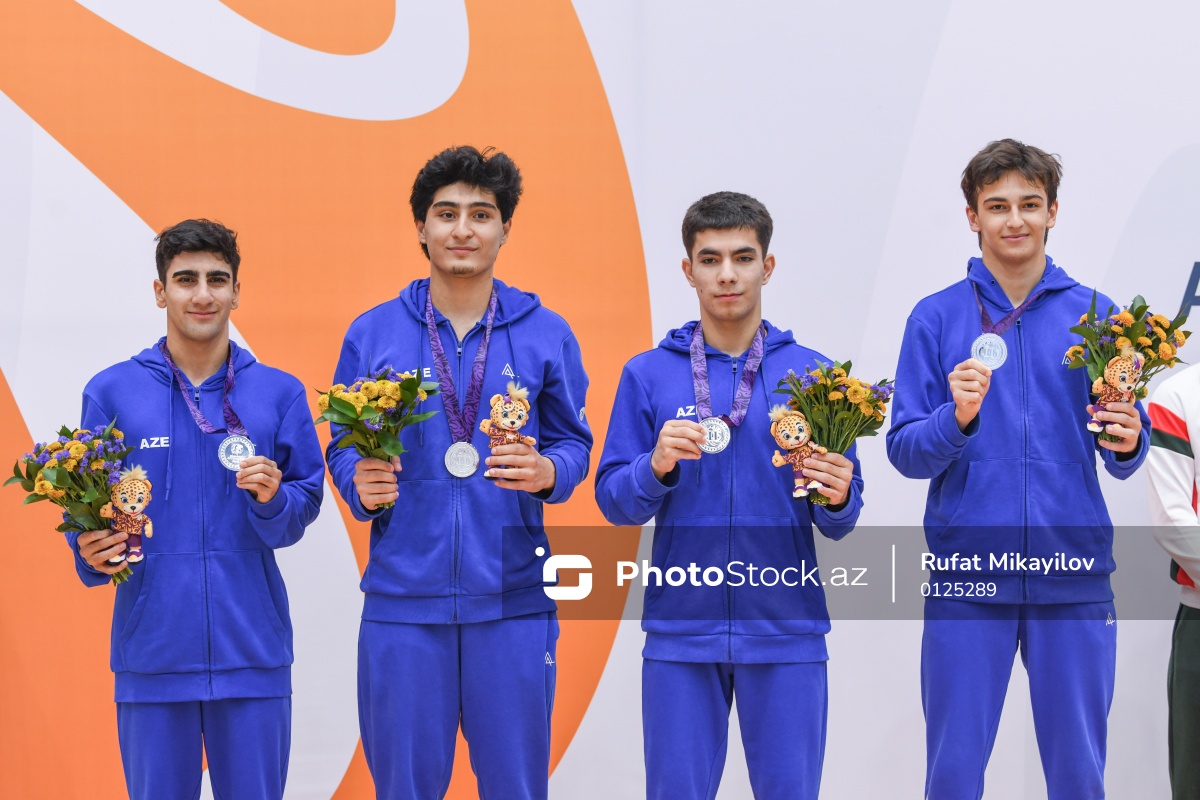 III MDB Oyunlarında batut gimnastikası üzrə yarışlarda gümüş medal qazanan Azərbaycan idmançıları (soldan-sağa) Maqsud Mahsudov, Nicat Mirzəyev, Mehdi Əliyev və Hüseyn Abbasov.