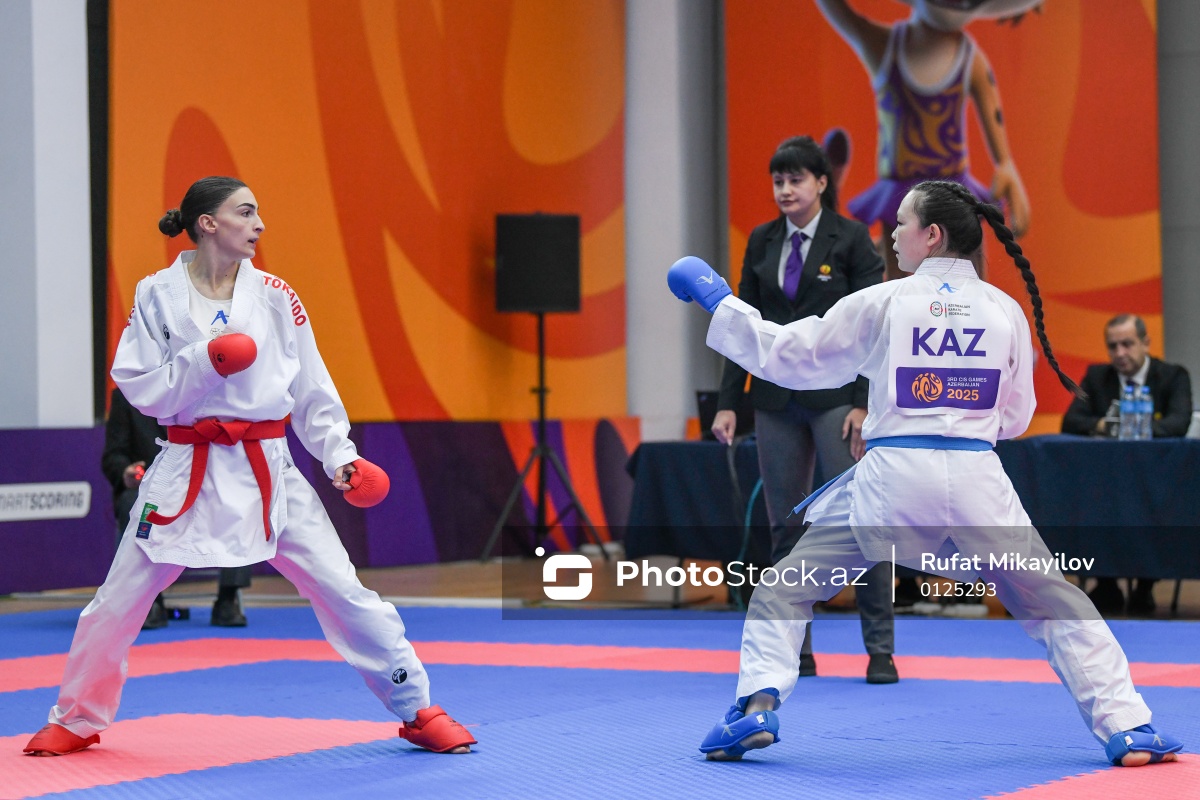 Oktyabrın 3-də III MDB Oyunları çərçivəsində "Kür" Olimpiya Tədris-İdman Mərkəzində karate yarışlarına start verilib. Qadınlar arasında 50 kq çəki dərəcəsində mübarizə aparan Azərbaycan təmsilçisi Fatimə Cəbrayılova (sol) Qazaxıstan karateçisi Malika Abzhanovaya (sağ) 1:3 hesabı ilə məğlub olub.