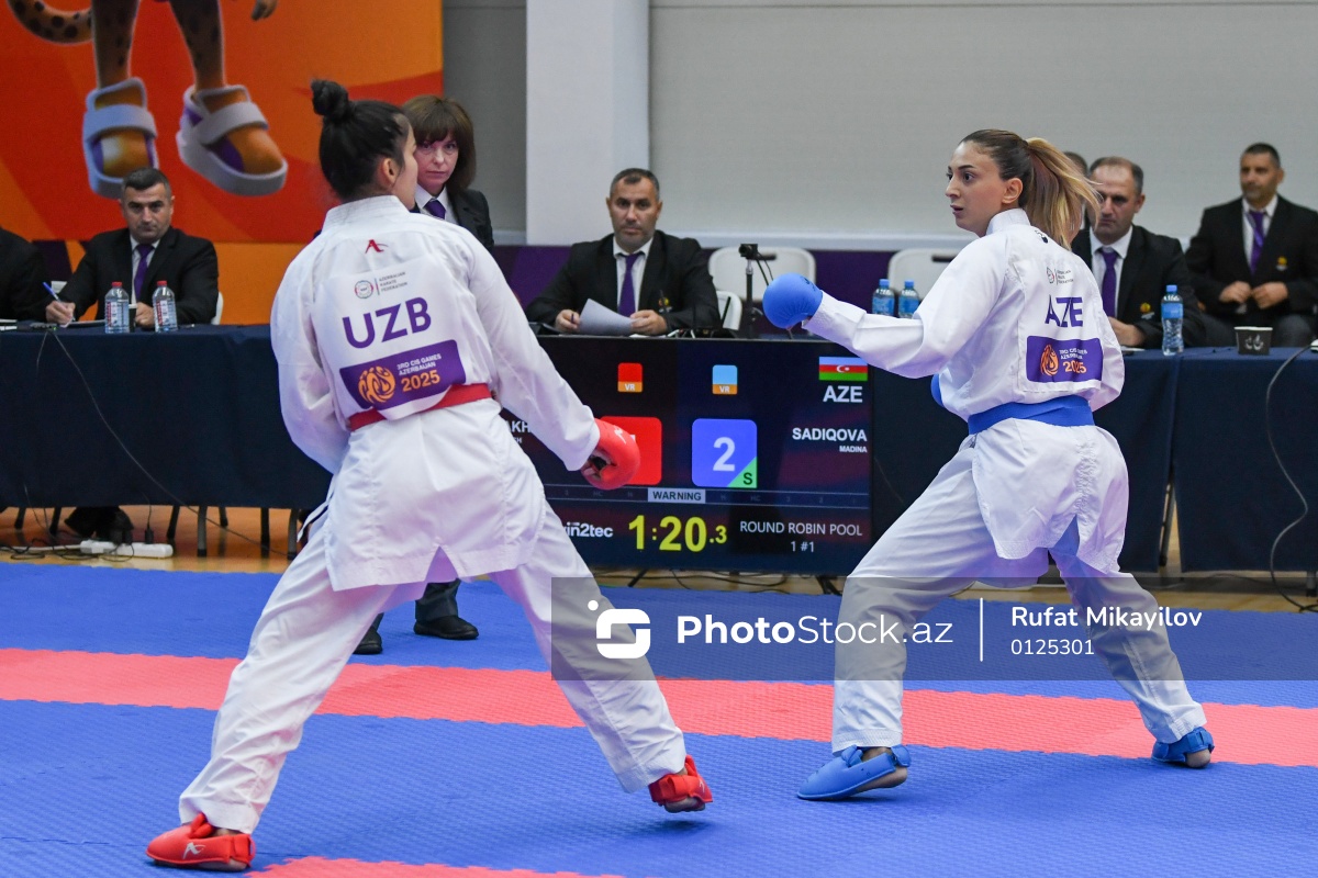 Oktyabrın 3-də III MDB Oyunları çərçivəsində "Kür" Olimpiya Tədris-İdman Mərkəzində karate yarışlarına start verilib. Qadınlar arasında 55 kq çəki dərəcəsində mübarizə aparan Özbəkistan karateçisi Sevinch Rakhimova (sol) Azərbaycan təmsilçisi Mədinə Sadiqovanı (sağ) 4:3 hesabı ilə məğlub edib.
