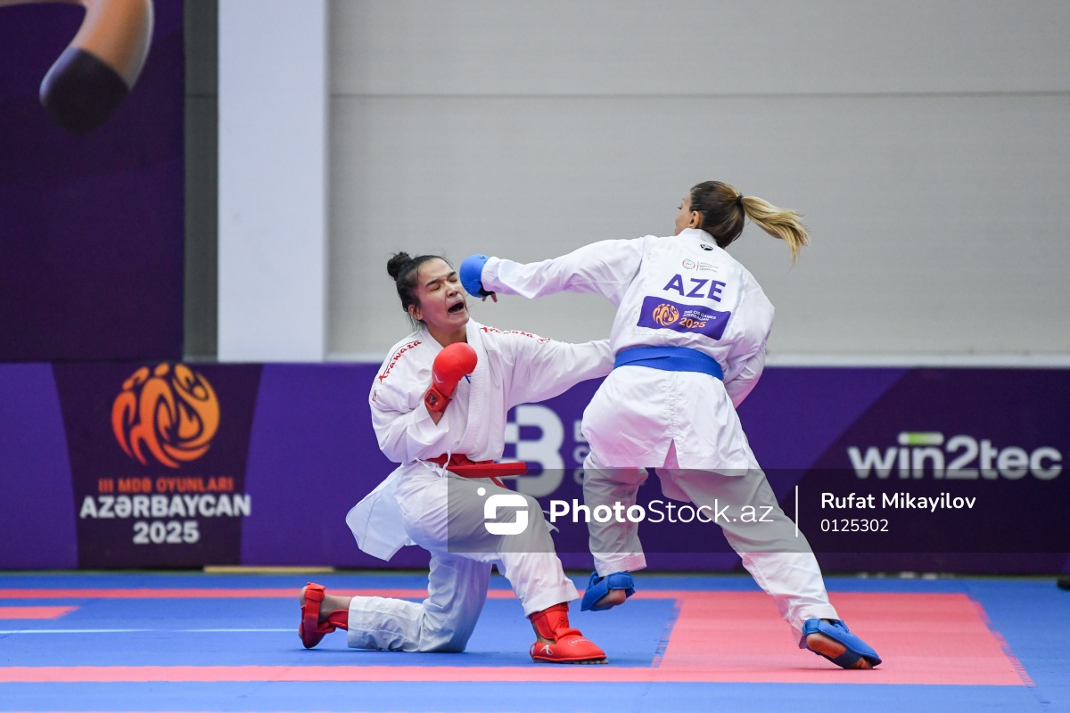 Oktyabrın 3-də III MDB Oyunları çərçivəsində "Kür" Olimpiya Tədris-İdman Mərkəzində karate yarışlarına start verilib. Qadınlar arasında 55 kq çəki dərəcəsində mübarizə aparan Özbəkistan karateçisi Sevinch Rakhimova (sol) Azərbaycan təmsilçisi Mədinə Sadiqovanı (sağ) 4:3 hesabı ilə məğlub edib.