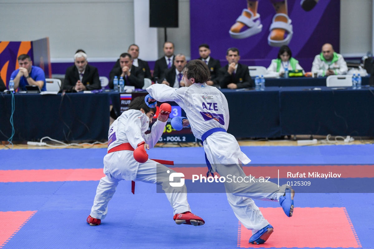 Oktyabrın 3-də III MDB Oyunları çərçivəsində "Kür" Olimpiya Tədris-İdman Mərkəzində karate yarışlarına start verilib. Kişilər arasında 60 kq çəki dərəcəsində mübarizə aparan Rusiya karateçisi Suleiman Pakhomov (sol) Azərbaycan təmsilçisi Fariz Şahbazovu (sağ) 4:3 hesabı ilə məğlub edib.