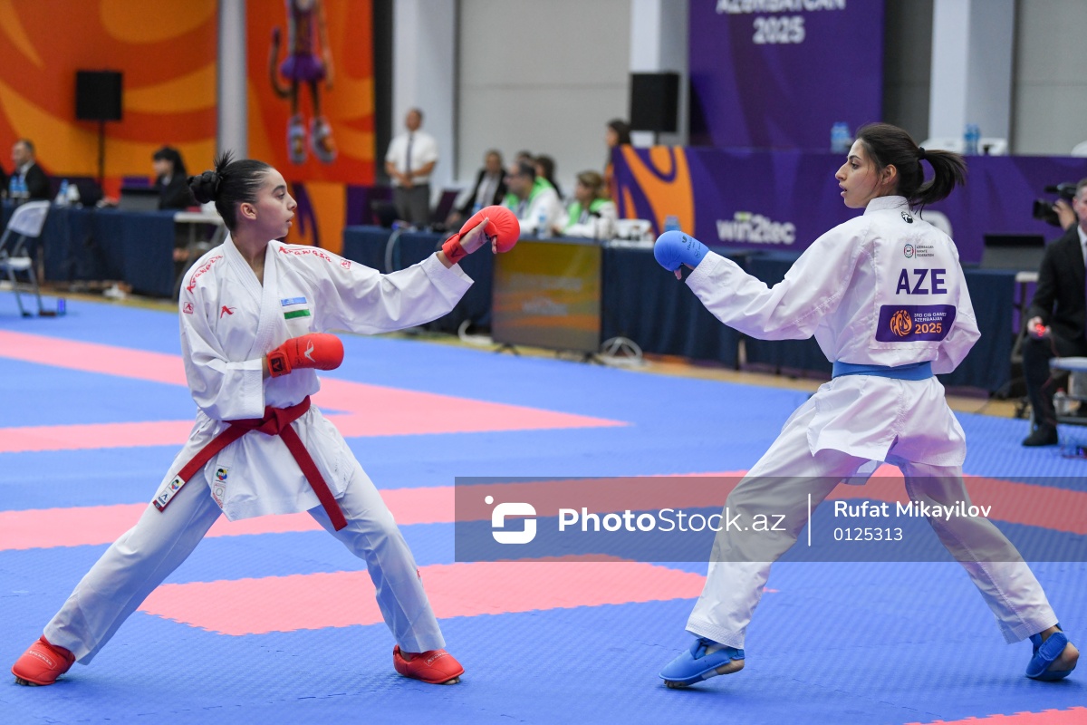 Oktyabrın 3-də III MDB Oyunları çərçivəsində "Kür" Olimpiya Tədris-İdman Mərkəzində karate yarışlarına start verilib. Qadınlar arasında 50 kq çəki dərəcəsində mübarizə aparan Özbəkistan karateçisi Gulshan Alimardanova (sol) Azərbaycan təmsilçisi İnci Əzizovanı (sağ) 4:1 hesabı ilə məğlub edib.