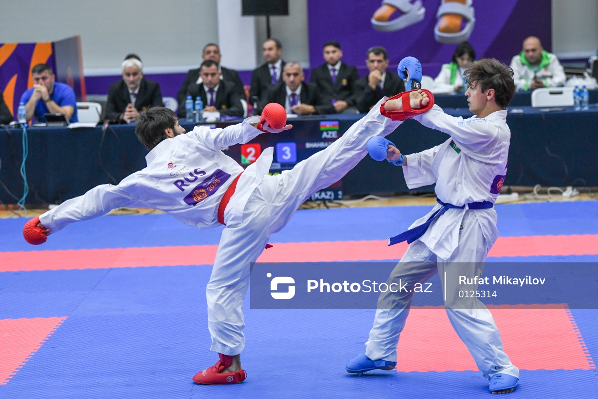 Oktyabrın 3-də III MDB Oyunları çərçivəsində "Kür" Olimpiya Tədris-İdman Mərkəzində karate yarışlarına start verilib. Kişilər arasında 60 kq çəki dərəcəsində mübarizə aparan Rusiya karateçisi Suleiman Pakhomov (sol) Azərbaycan təmsilçisi Fariz Şahbazovu (sağ) 4:3 hesabı ilə məğlub edib.