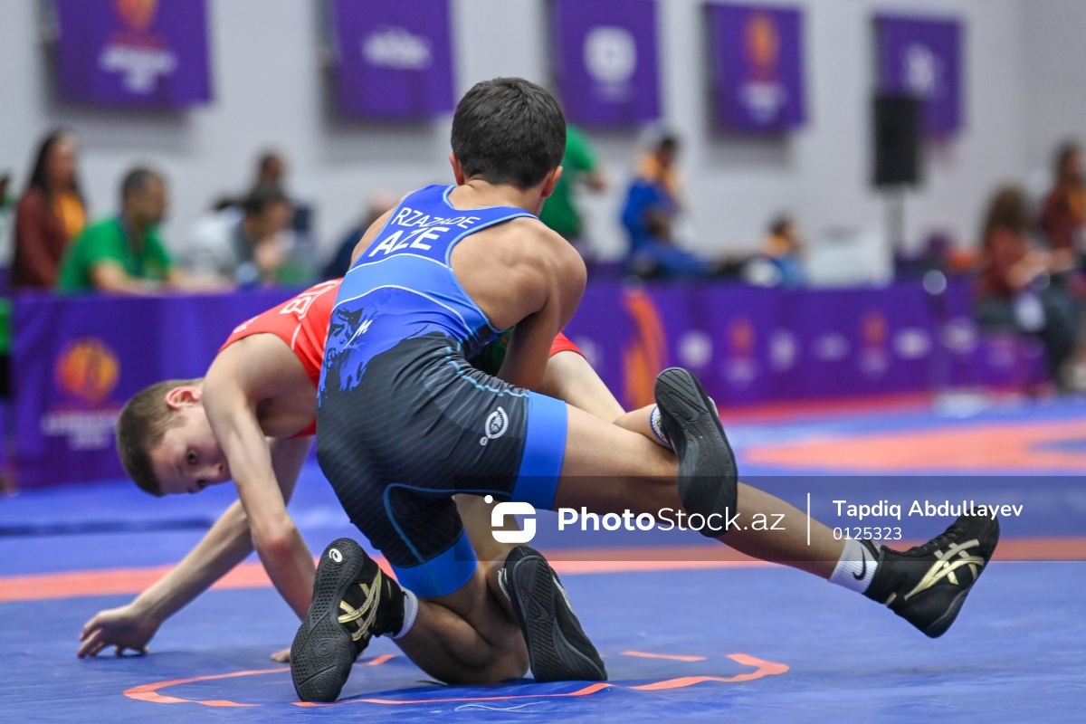 Oktyabrın 3-də III MDB Oyunları çərçivəsində Gəncə Olimpiya İdman Kompleksində güləş üzrə yarışlar keçirilib. Kişilər arasında 45 kq çəki dərəcəsində mübarizə aparan Belarus təmsilçisi Ivan Astreika (sol) Azərbaycan güləşçisi Hüseyn Rzazadəyə (sağ) 0:10 hesabı ilə məğlub olub.