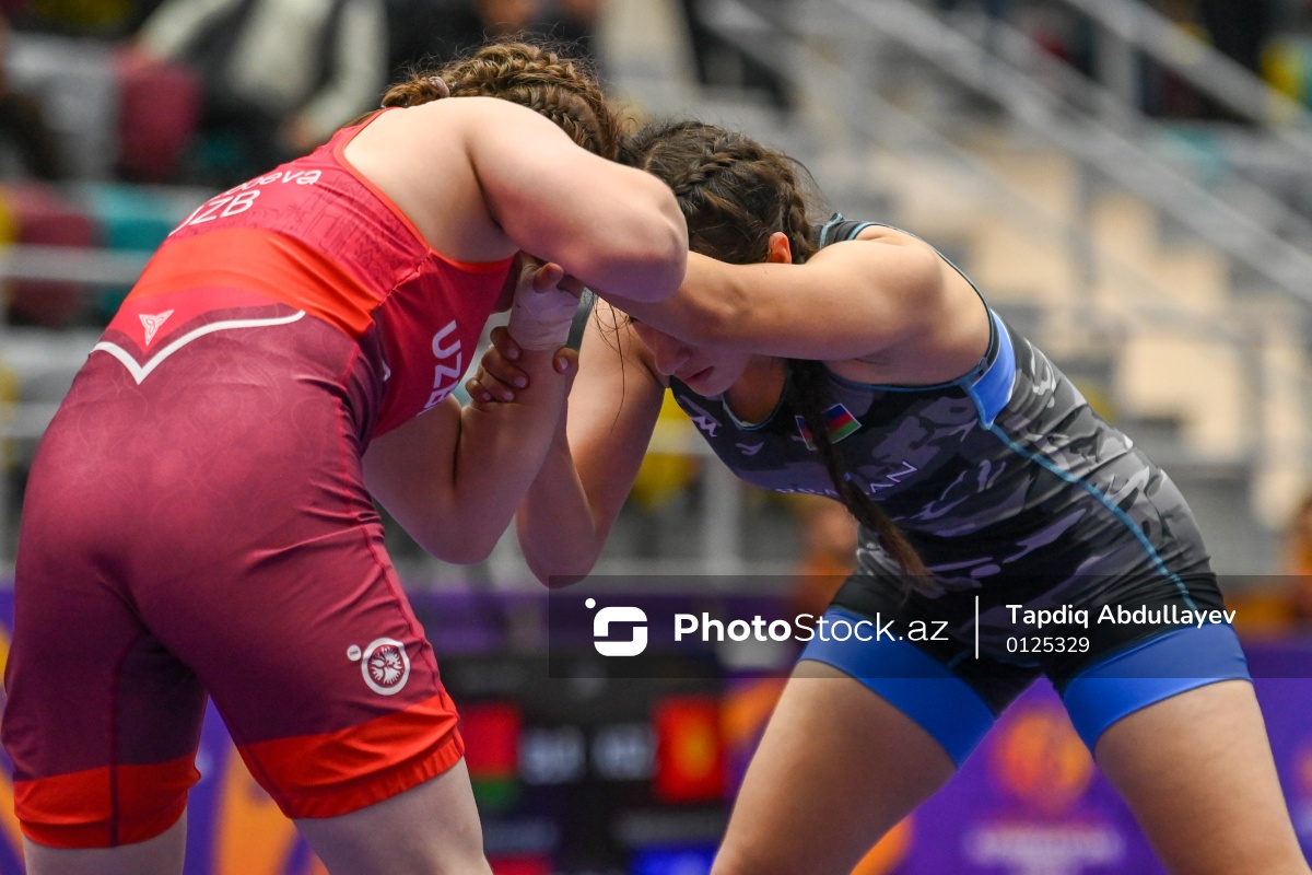 Oktyabrın 3-də III MDB Oyunları çərçivəsində Gəncə Olimpiya İdman Kompleksində güləş üzrə yarışlar keçirilib. Qadınlar arasında 61 kq çəki dərəcəsində mübarizə aparan Özbəkistan təmsilçisi Laylo Orazboeva (sol) Azərbaycan güləşçisi Fidan Babayevaya (sağ) 2:7 hesabı ilə məğlub olub.