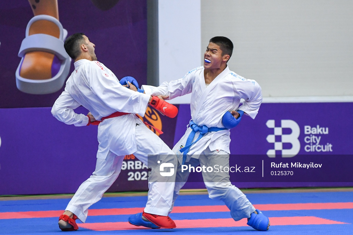 Oktyabrın 3-də III MDB Oyunları çərçivəsində "Kür" Olimpiya Tədris-İdman Mərkəzində karate yarışlarına start verilib. Kişilər arasında 67 kq çəki dərəcəsində mübarizə aparan Azərbaycan karateçisi Nuran Rzazadə (sol) Qırğızıstan təmsilçisi Erlan Akylbek Uulunu (sağ) 6:4 hesabı ilə məğlub edib.