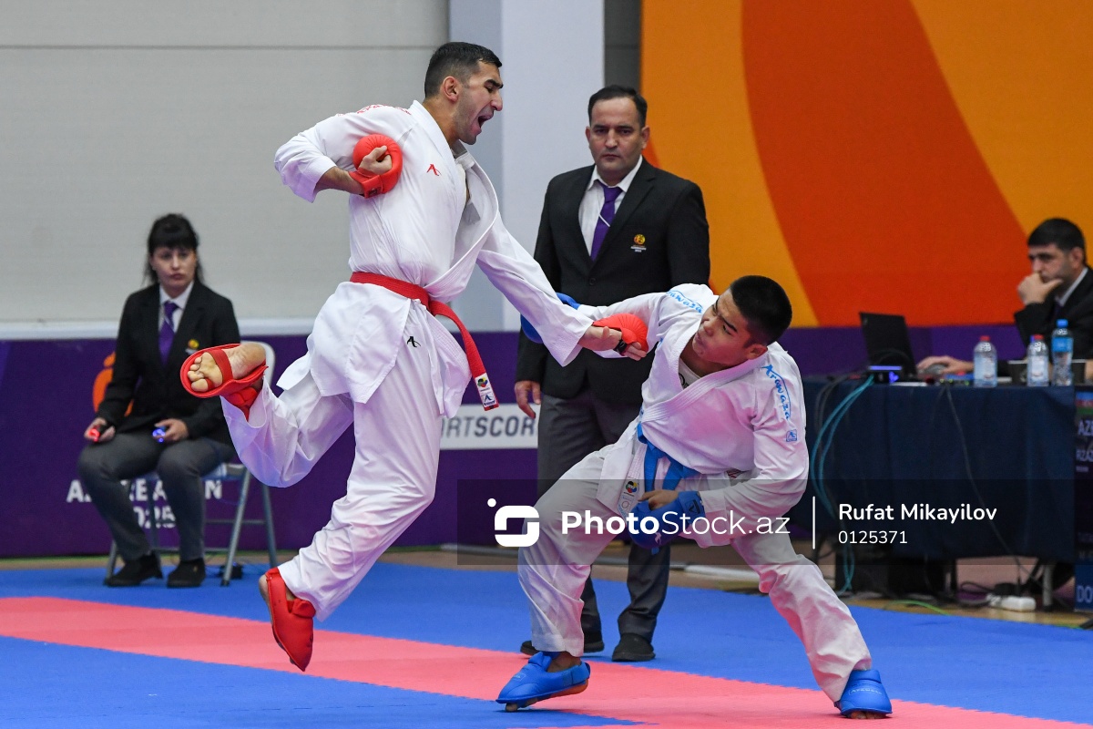 Oktyabrın 3-də III MDB Oyunları çərçivəsində "Kür" Olimpiya Tədris-İdman Mərkəzində karate yarışlarına start verilib. Kişilər arasında 67 kq çəki dərəcəsində mübarizə aparan Azərbaycan karateçisi Nuran Rzazadə (sol) Qırğızıstan təmsilçisi Erlan Akylbek Uulunu (sağ) 6:4 hesabı ilə məğlub edib.