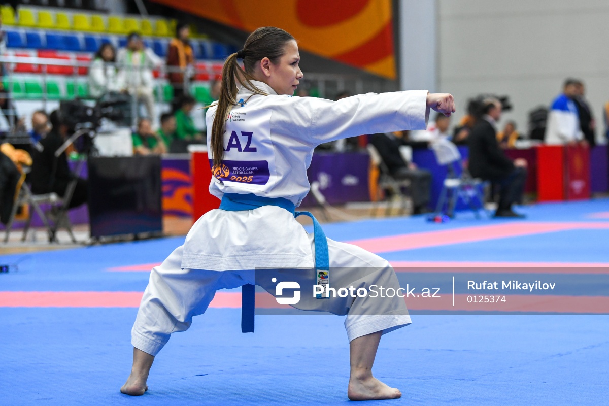 III MDB Oyunlarında karate üzrə fərdi kata yarışında mübarizə aparan Qazaxıstan karateçisi Natali Kassikova.