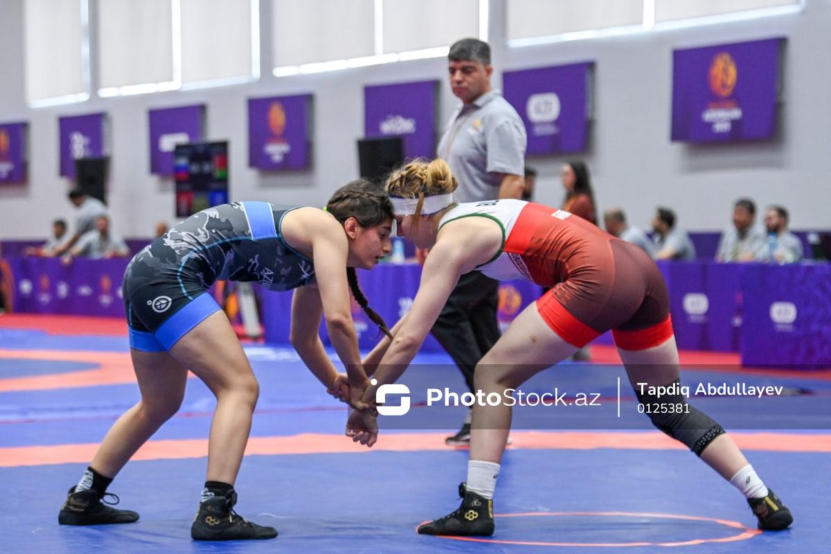 Oktyabrın 3-də III MDB Oyunları çərçivəsində Gəncə Olimpiya İdman Kompleksində güləş üzrə yarışlar keçirilib. Qadınlar arasında 61 kq çəki dərəcəsində mübarizə aparan Azərbaycan güləşçisi Fidan Babayeva (sol) Belarus təmsilçisi Varvara Aliseyenkaya (sağ) 0:4 hesabı ilə məğlub olub.