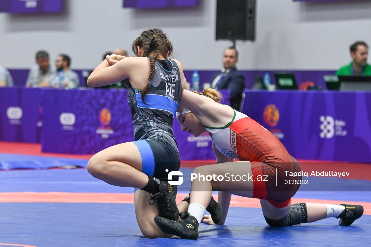 Oktyabrın 3-də III MDB Oyunları çərçivəsində Gəncə Olimpiya İdman Kompleksində güləş üzrə yarışlar keçirilib. Qadınlar arasında 61 kq çəki dərəcəsində mübarizə aparan Azərbaycan güləşçisi Fidan Babayeva (sol) Belarus təmsilçisi Varvara Aliseyenkaya (sağ) 0:4 hesabı ilə məğlub olub.