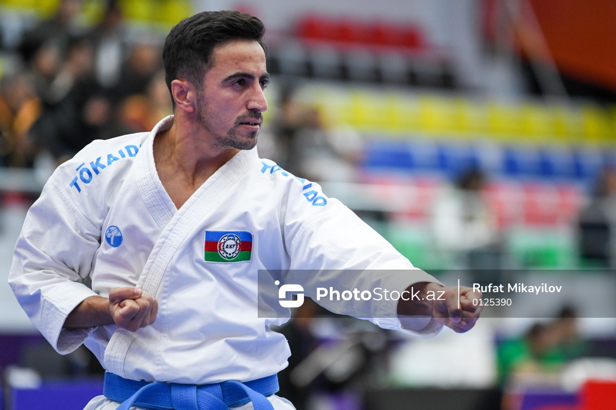 III MDB Oyunlarında karate üzrə fərdi kata yarışında mübarizə aparan Azərbaycan karateçisi Rövşən Əliyev.