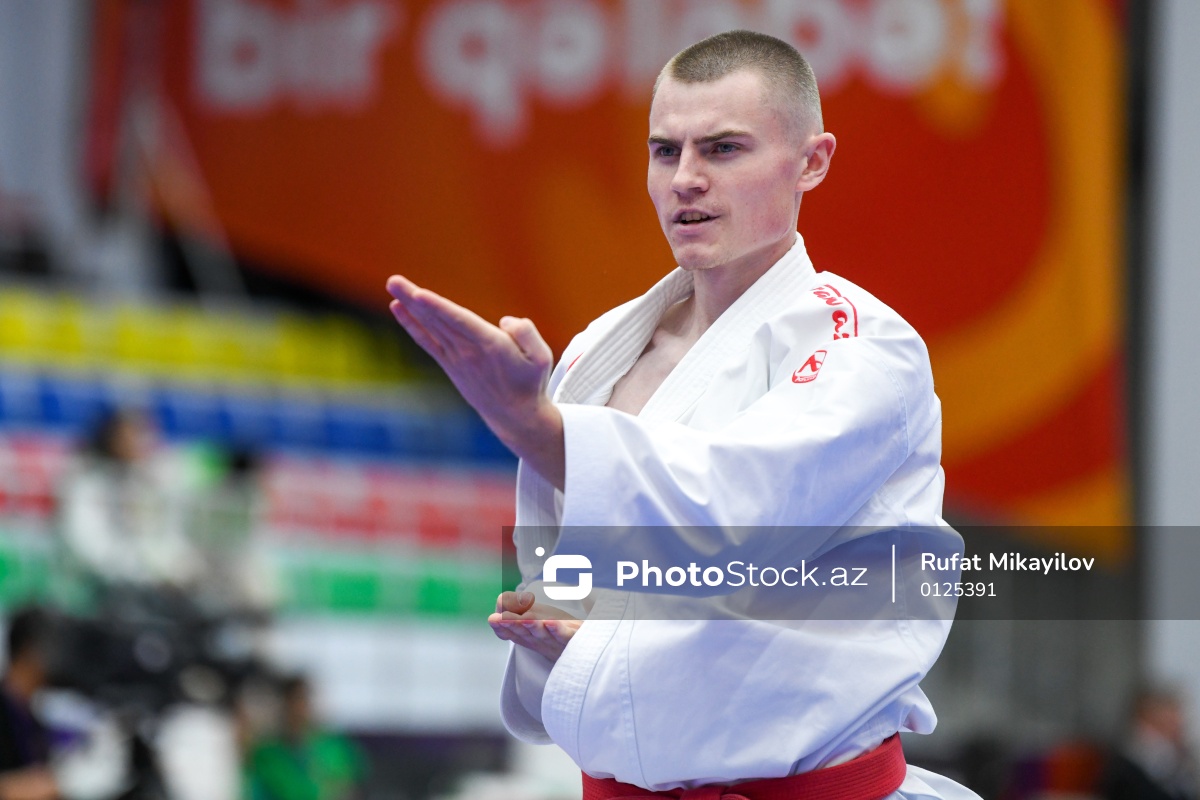 III MDB Oyunlarında karate üzrə fərdi kata yarışında mübarizə aparan Belarus karateçisi Aliaksei Furyk.