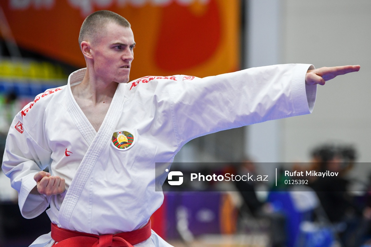 III MDB Oyunlarında karate üzrə fərdi kata yarışında mübarizə aparan Belarus karateçisi Aliaksei Furyk.