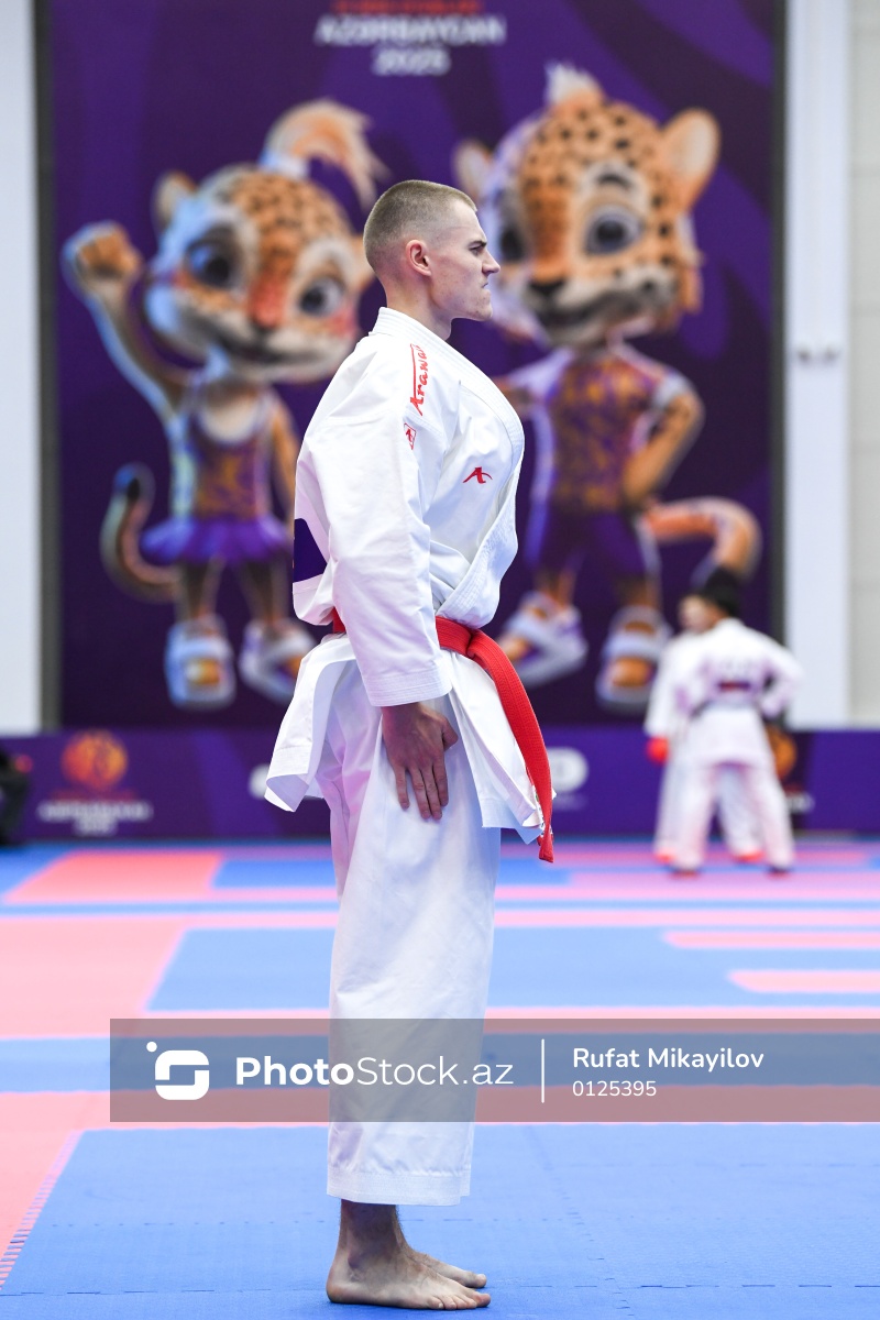 III MDB Oyunlarında karate üzrə fərdi kata yarışında mübarizə aparan Belarus karateçisi Aliaksei Furyk.