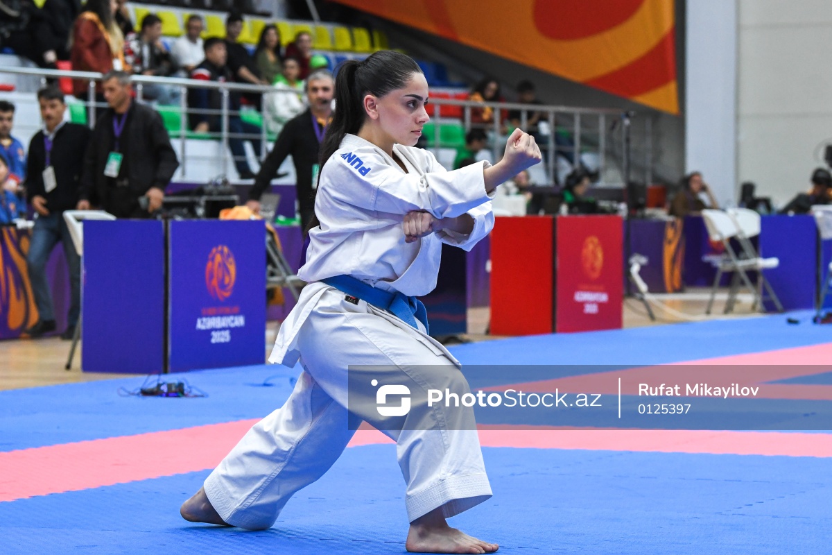 III MDB Oyunlarında karate üzrə fərdi kata yarışında mübarizə aparan Azərbaycan karateçisi Samirə Məmmədova.