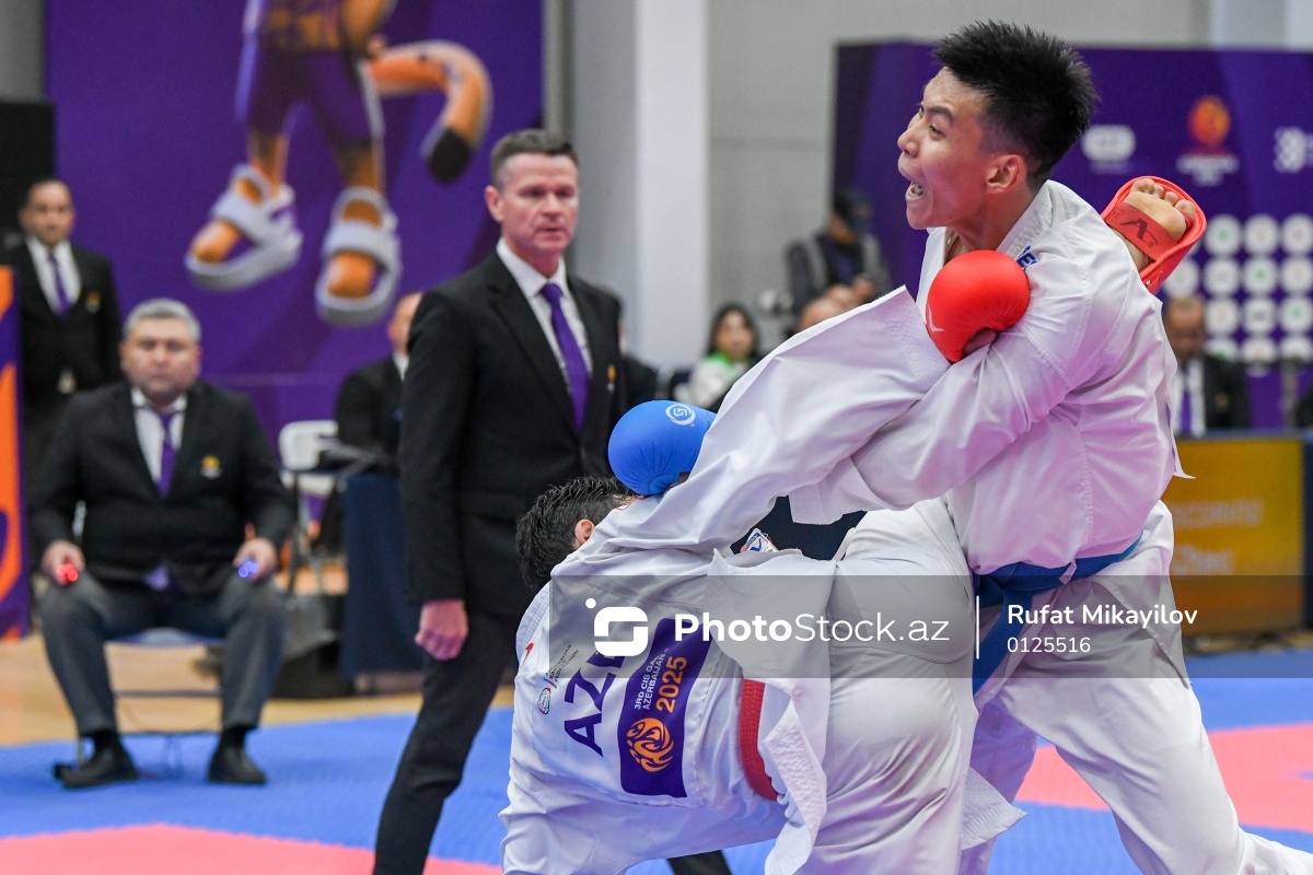 Oktyabrın 3-də III MDB Oyunları çərçivəsində "Kür" Olimpiya Tədris-İdman Mərkəzində karate yarışlarında final oyunları keçirilib. Kişilər arasında 60 kq çəki dərəcəsində mübarizə aparan Azərbaycan karateçisi Fərid Savadov (sol) Qazaxıstan təmsilçisi Darkhan Timraliyevə (sağ) 1:4 hesabı ilə məğlub olub.