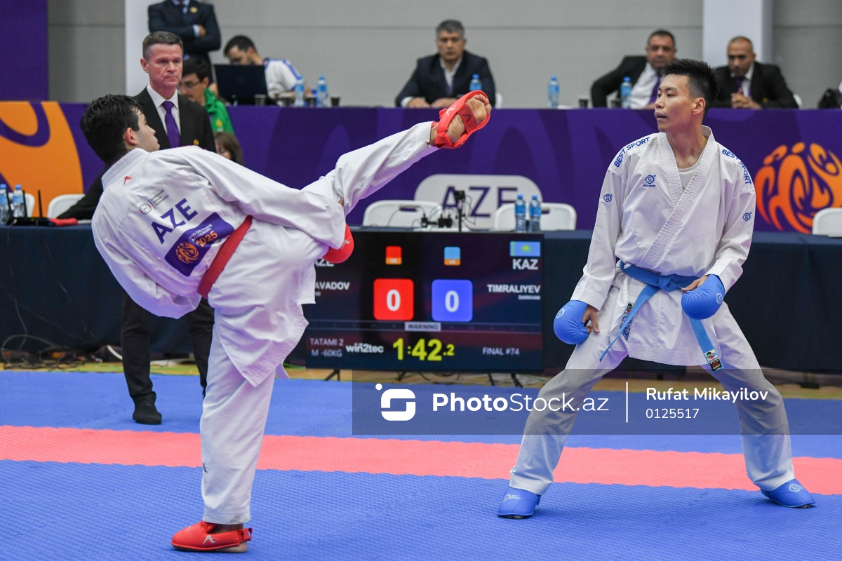 Oktyabrın 3-də III MDB Oyunları çərçivəsində "Kür" Olimpiya Tədris-İdman Mərkəzində karate yarışlarında final oyunları keçirilib. Kişilər arasında 60 kq çəki dərəcəsində mübarizə aparan Azərbaycan karateçisi Fərid Savadov (sol) Qazaxıstan təmsilçisi Darkhan Timraliyevə (sağ) 1:4 hesabı ilə məğlub olub.