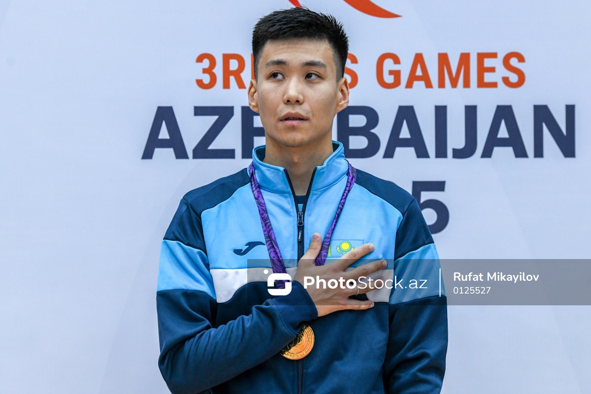 III MDB Oyunlarında 60 kq çəki dərəcəsində qızıl medal qazanan Qazaxıstan karateçisi Darkhan Timraliyev.