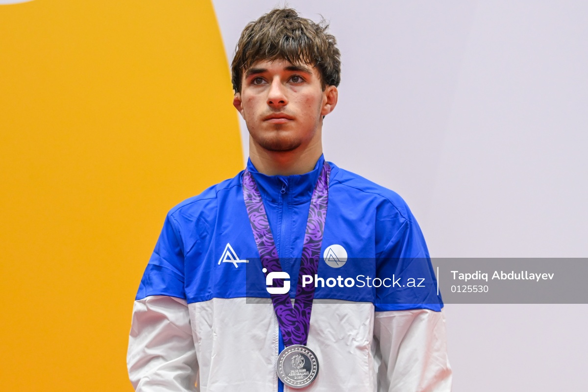 III MDB Oyunlarında 51 kq çəki dərəcəsində güləş üzrə yarışlarda gümüş medal qazanan Azərbaycan güləşçisi Hacıhüseyn Əhmədzadə.