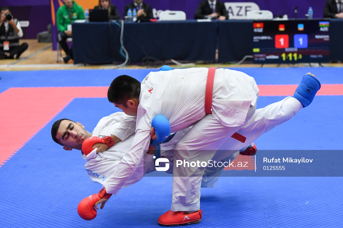 Oktyabrın 3-də III MDB Oyunları çərçivəsində "Kür" Olimpiya Tədris-İdman Mərkəzində karate yarışlarında final oyunları keçirilib. Kişilər arasında 67 kq çəki dərəcəsində mübarizə aparan Azərbaycan karateçisi Nuran Rzazadə (sol) Qırğızıstan təmsilçisi Erlan Akylbek Uulunu (sağ) 7:3 hesabı ilə məğlub edib.