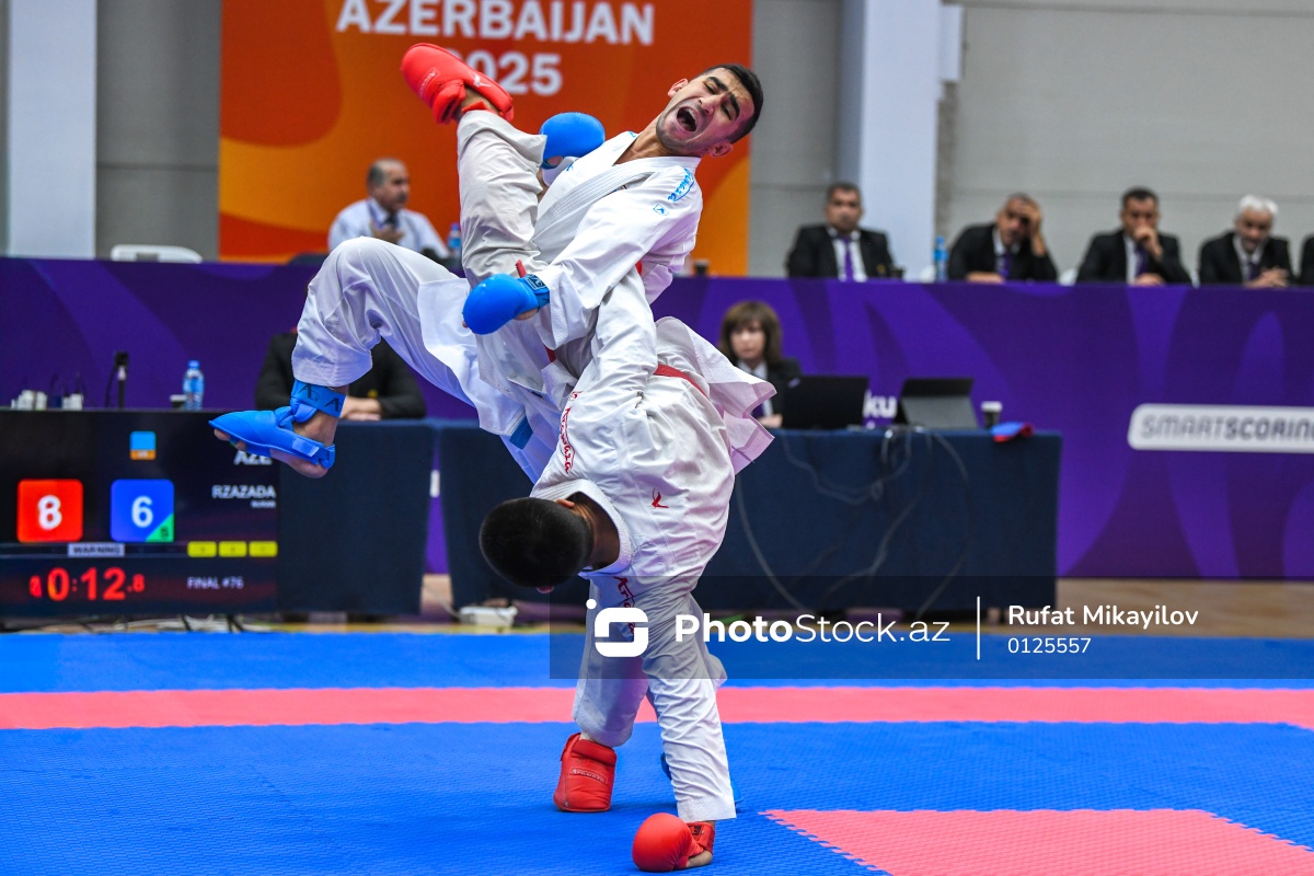 Oktyabrın 3-də III MDB Oyunları çərçivəsində "Kür" Olimpiya Tədris-İdman Mərkəzində karate yarışlarında final oyunları keçirilib. Kişilər arasında 67 kq çəki dərəcəsində mübarizə aparan Azərbaycan karateçisi Nuran Rzazadə (sol) Qırğızıstan təmsilçisi Erlan Akylbek Uulunu (sağ) 7:3 hesabı ilə məğlub edib.