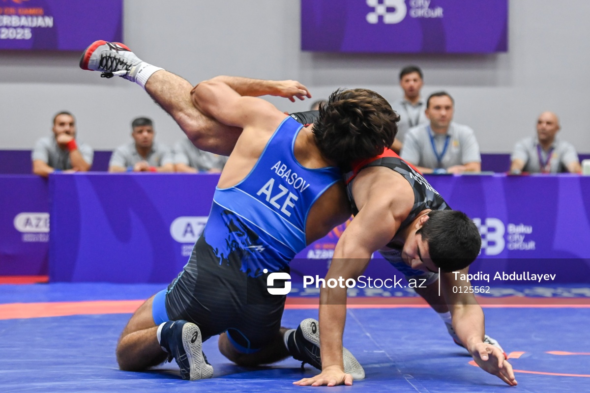 Oktyabrın 3-də III MDB Oyunları çərçivəsində Gəncə Olimpiya İdman Kompleksində güləş üzrə yarışlar keçirilib. Kişilər arasında 71 kq çəki dərəcəsində mübarizə aparan Azərbaycan güləşçisi Nihad Abasov (sol) Rusiya təmsilçisi Zubair Bagilova (sağ) 11:6 hesabı ilə qalib gələrək qızıl medal qazanıb.